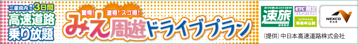 みえ周遊ドライブプランは、高速道路周遊パス(高速道路割引)と三重県内の人気の観光施設(54ヶ所)の入場、お買物、お食事で使えるお買い物券(5,000円分)がセットになったプランです。